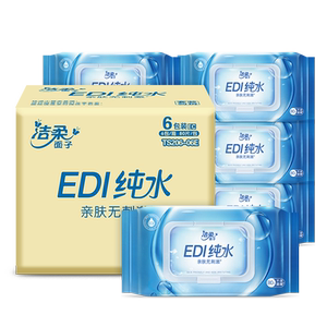 洁柔湿纸巾EDI纯水亲肤成人带盖卫生清洁加厚实惠6大包家用湿巾纸