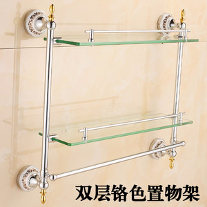 泽牌浴室卫生间钢化玻璃置物架 单层化妆品架 卫浴五金架带毛巾架