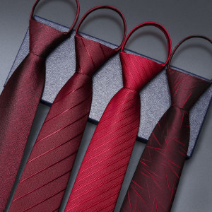 红色结婚领带男拉链式新郎婚礼酒红手打正装西装商务男士免打懒人