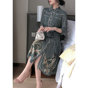 yibox真丝连衣裙女2020夏新款桑蚕丝印花中长款裙子ZY7361