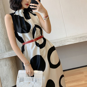 yibox夏100%桑蚕丝洋气大波点印花无袖真丝连衣裙Q202074