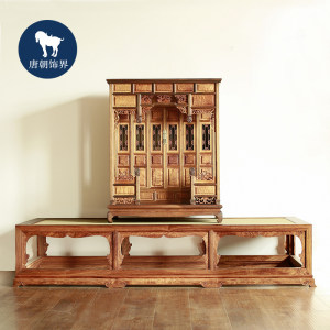 唐朝饰界 明清经典家具 金丝楠带垂花门罩殿式佛龛 殿式神龛 供案