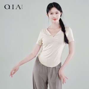 琪亚成人舞蹈服现代舞练功服V领短袖上衣女古典民族舞跳舞训练服