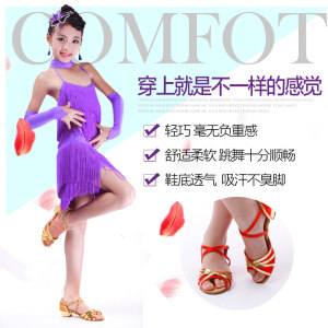 飞魅 儿童拉丁舞鞋新款交谊舞鞋女 少儿软底中跟舞蹈鞋练功拉丁鞋