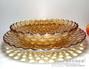 包邮高级无铅水晶玻璃果盘彩色果斗盆琥珀色水果盘子琉璃色金君子