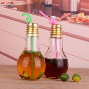 源源顺新颖创意果汁杯玻璃瓶冰桔瓶灯泡形冷饮杯沙冰杯特色玻璃杯