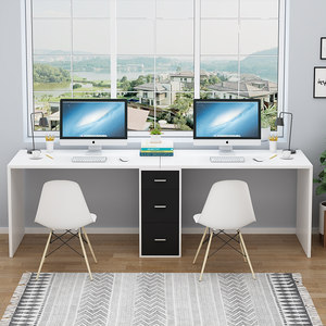 急速发货千芝爱双人书桌台式学习办公桌组合家用写字台简易一体抽