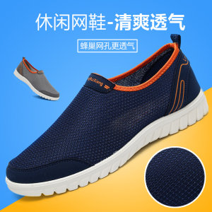 隆瑞祥布鞋男夏季薄款透气网鞋一脚蹬男鞋轻便防滑休闲健步老人鞋