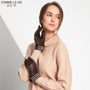 乐为羊皮手套女士秋天冬季保暖真皮手套户外短款时尚格子分指时尚