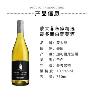 【自营】美国蒙大菲私家精选霞多丽白葡萄酒750ml*1瓶进口红酒