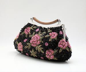 彩月时尚民族风情珠绣手拿宴会晚装包 花朵钉珠珠绣礼服包旗袍包