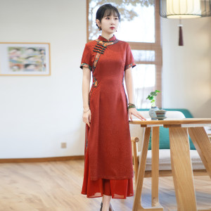 如意风奥黛旗袍中国风连衣裙女夏季新款收腰显瘦年轻民国复古裙子