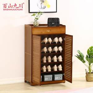 百山九川鞋柜家用门口收纳简易多层大容量鞋架经济型竹实木架防尘