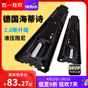 海蒂诗阻尼抽屉轨道 三节加厚缓冲静音滑轨滑道导轨侧装 三节轨