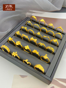 右米 霸气镀24K黄金色戒指男士时尚越南沙金开活口食指环潮男首饰