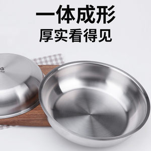 三A304不锈钢餐盘圆盘蒸盘圆形菜盘菜碟子深盘餐具食品级家用盘子
