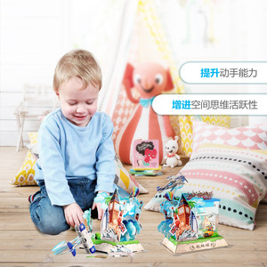 卡乐保3D立体养殖鱼缸种植拼图亲子飞越地球村益智力儿童DIY纸模