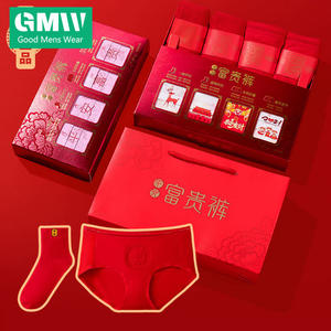 GMW本命年中国红内裤 60S莫代尔男士平角女三角裤2双袜子礼盒装