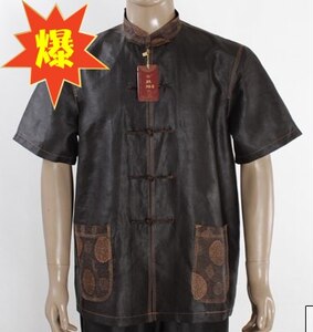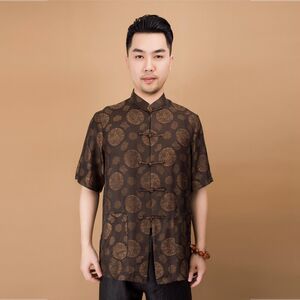 古丝路夏季新款中国风男装真丝衬衫男士短袖香云纱唐装立领桑蚕丝