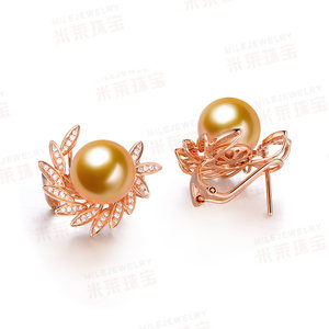米莱珠宝 11mm南洋金珍珠耳环 18K金镶嵌钻石海水珍珠耳环定制