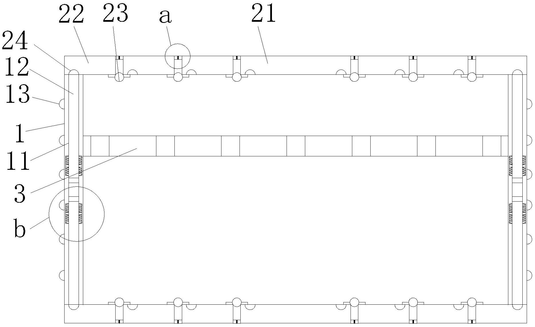 本实用新型涉及吊柜技术领域,且公开了一种可任意定制尺寸的混合材料吊柜,包括竖板、横板、放置架和背板,竖板和横板均有两个,两个竖板卡合在两个横板中间,放置架固定安装在两个竖板中间,放置架和背板均为可伸缩板,每个横板包括有初始板和组合板,组合板有六个且初始板的左右两侧个设置有三个组合板,使两个拨动板相互靠近,拨动板带动固定杆在活动槽内移动,从而使固定杆的伸出活动槽的一端从嵌入槽脱离,从而使竖板与初始板或组合板分离,将开合在竖板侧面嵌入块上的组合板转动水平,然后松开拨动板,利用限位块的弹力效果,固定杆在活动槽内恢复原位,且此时固定杆卡合在转动水平的组合板上的嵌入槽内,达到改变吊柜尺寸的效果。
