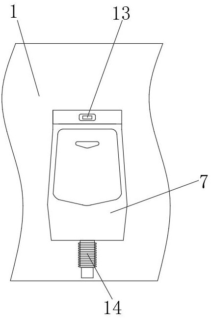 本实用新型公开了一种免接触式自动感应式便池,包括墙体,所述墙体的正表面预埋有箱体,所述箱体的内腔纵向转动连接有螺纹杆,所述螺纹杆的表面螺纹连接有螺套,所述螺套的表面固定连接有活动板,所述活动板的表面设置有安装板,所述安装板的前侧贯穿至墙体的前侧并固定连接有便池本体。本实用新型通过驱动机构来控制螺纹杆的转动,进而使得螺套带动活动板上下运动,从而使得安装板带动便池本体上下运动以适配不同身高的使用者,即可达到高度可调节的目的,解决了在实际使用的过程中,免接触式自动感应式便池一般都是固定的,不能根据使用者的高度进行适当调节,便池的高低决定了使用时的舒适度,给使用者带来不便的问题。