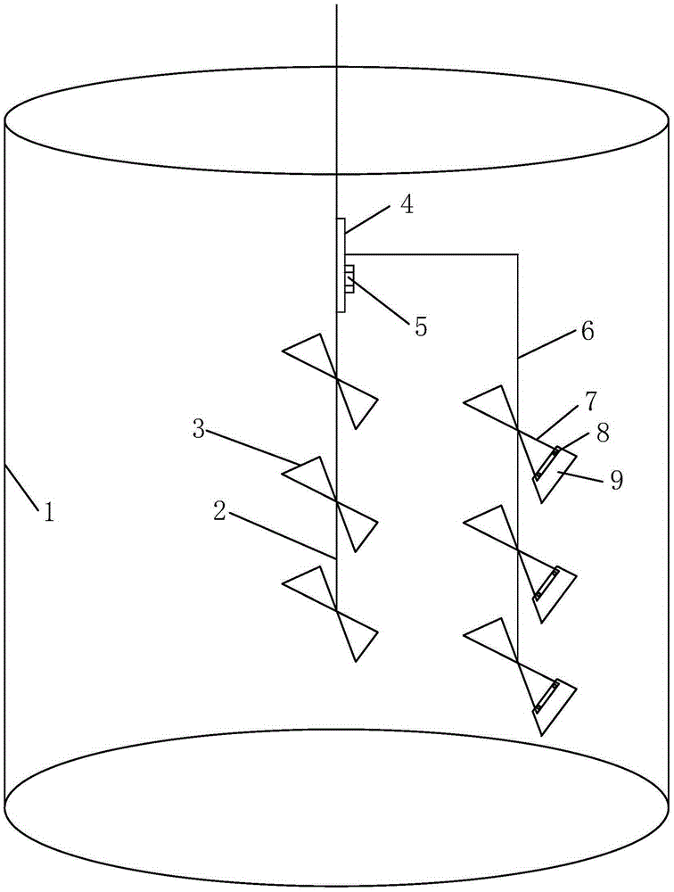 本实用新型公开了一种具有辅助轴的涂料分散装置,包括壳体,所述壳体内穿设有通过驱动机构驱动的转轴,所述转轴上固定有多个主叶片,具有辅助轴的涂料分散装置还包括呈L形弯折的辅助轴,所述转轴沿其轴向开设有若干个连接孔,所述辅助轴的一端连接有安装板,螺纹件穿过所述连接孔以及所述安装板将所述辅助轴固定于所述转轴上,所述辅助轴上固定有多个次叶片。采用本实用新型的具有辅助轴的涂料分散装置,提高了物料的均匀性。