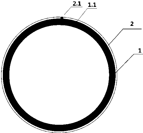 本实用新型公开了一种金属复合管及其生产线,金属复合管包含内层管(1)和外层管(2),所述内层管(1)由第一金属带成型并经第一次焊接而成,所述外层管(2)是将第二金属带紧密贴合在内层管(1)外并经第二次焊接而成,所述第二次焊接为包覆焊接,将内层管(1)和外层管(2)焊接在一起,所述第一次焊接形成的第一焊缝(1.1)与第二次焊接形成的第二焊缝(2.1)不重叠。本实用新型采用2次成型、2次焊接的方式制得,通过焊接过程中的变化使2次焊接的焊缝不重叠,避免了因焊缝重叠而易于造成的多种质量隐患,且通过严格创新地控制工艺实现了不锈钢钢带厚度仅有0.1mm的生产,不仅保证了金属复合管的优良性能,而且大大降低了成本,值得推广。