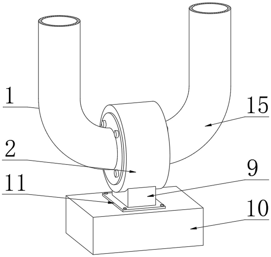 本实用新型公开了一种地源热泵用防堵塞换热器,包括第一弯管和第二弯管,所述第一弯管和第二弯管之间设有一个壳体,所述壳体内部固定设有滤网板,所述滤网板一侧设有转杆,且所述转杆一端与滤网板一侧通过轴承活动连接,所述转杆外端固定设有刮板,所述刮板一侧与滤网板一侧相接触,所述转杆外端固定设有叶轮。本实用新型通过滤网板对流进壳体中的介质进行过滤,根据叶轮的结构特性,介质在壳体中流动时会使得叶轮旋转,叶轮旋转时通过转杆带动刮板一起转动并通过刮板将叶轮上附着的杂质刮落,介质中的杂质被滤网板有效过滤并且不会堆积在一起导致第一弯管和第二弯管被堵塞住,极大的提高了换热器的使用效果。