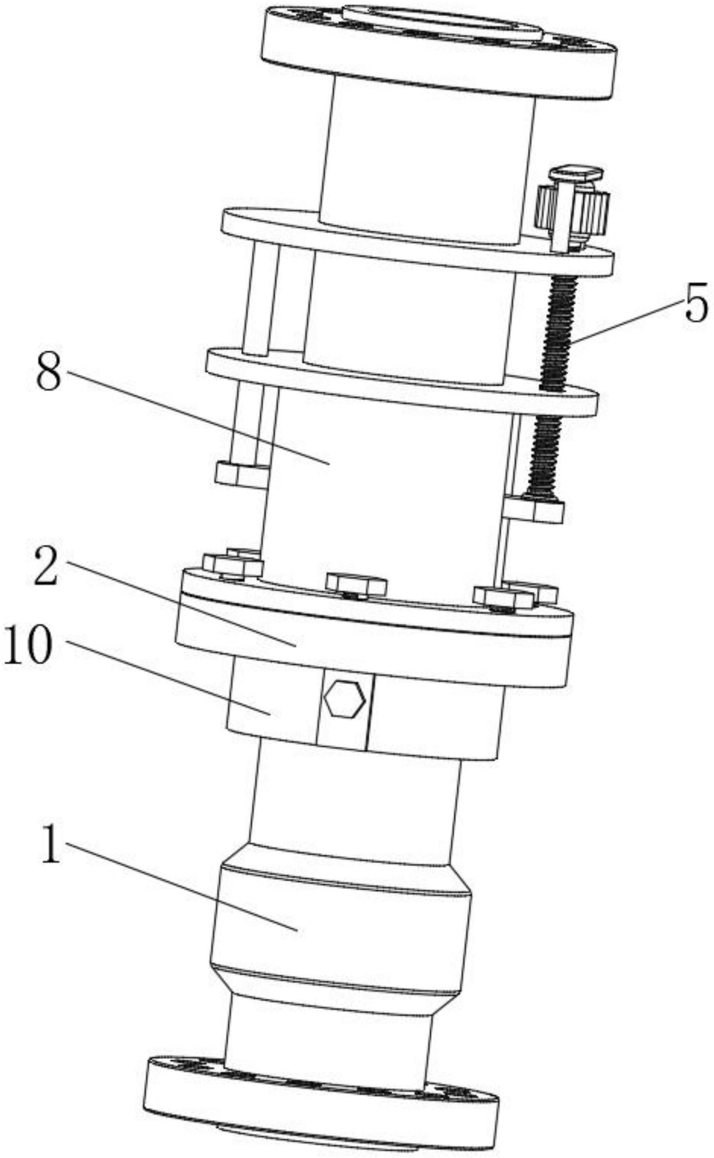 本实用新型提供一种水轮机主轴密封装置,涉及水轮机主轴密封技术领域,包括轴体,轴体的外表面套设有密封圈,轴体的外表面固装有安装环,轴体的外表面装有安装块,安装块的数量为两组,一组安装块的上表面转动连接有螺纹杆,螺纹杆贯穿安装环的下表面并延伸至安装环的上表面。本实用新型,通过设置轴体、密封圈、安装环、安装块、螺纹杆、伺服电机、限位杆、固定套和固定螺栓,实现了对水轮机主轴进行密封的功能,改变了水轮机主轴的密封方式,提升了密封装置的密封效果,可以防止水渗漏到机坑内,防止水淹没水导轴承,避免破坏水导轴承的工作,使得水轮机可以的安全稳定运行,避免工作事故发生。