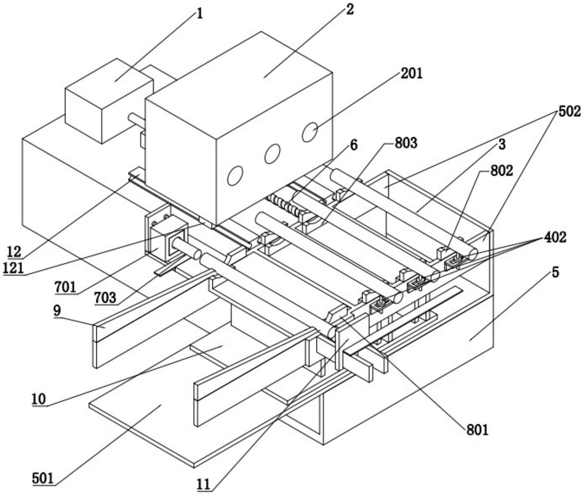 本实用新型涉及半轴加工领域,公开一种半轴自动化加热机构,包括;机架,所述机架设置有上料部、定位部、顶料部和加热部。上料部,用于将待加热的半轴运送至定位部;定位部,包括第一定位结构和第二定位结构,所述第一定位结构用于承接从上料部运送过来的半轴,所述第二定位结构与加热部的加热位对应设置;加热部,设置有加热位,所述加热位与第二定位结构对应;顶料部,包括顶升机构、第二气缸和安装第二气缸上的第二活塞杆,所述顶升机构受第二活塞杆的驱动,当顶升机构上升时,顶升机构将位于第一定位结构或第二定位结构上的半轴顶起。此机构的作用是:可以对半轴进行自动上料和自动加热。