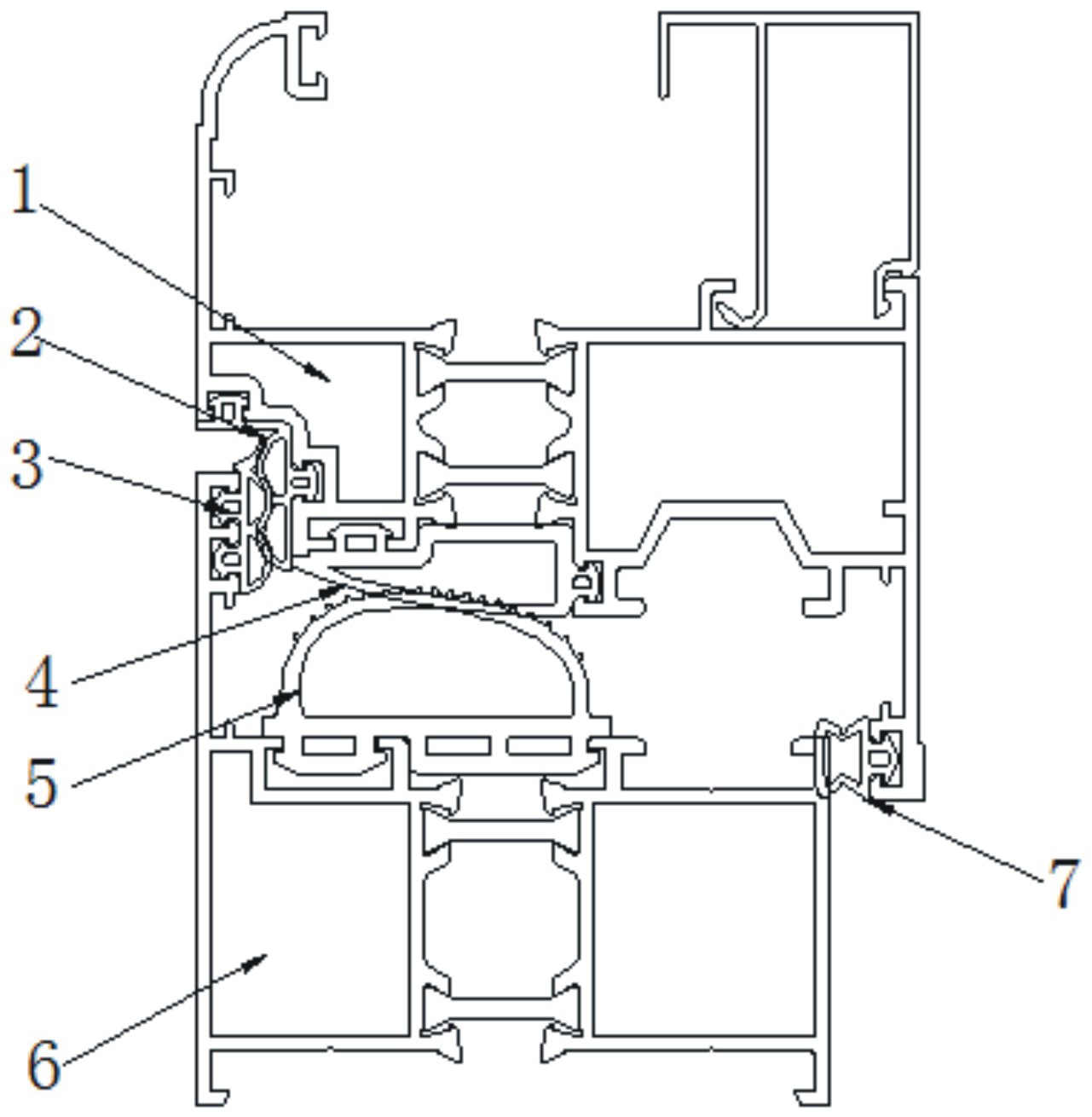 本实用新型公开了一种新型密封静音门窗,包括门扇、门框和防撞隔音胶条,所述门扇的一端设置有门框,且门扇的一侧设置有门扇胶条,另一侧设置有防撞隔音胶条,所述门扇的内部靠近门扇胶条的一侧位置处安装有门扇橡胶,所述门框的一侧对应门扇胶条的一端位置处安装有门框胶条。本实用新型结构科学合理,使用安全方便,设置了防撞隔音胶条、门扇胶条和门框胶条,使门扇与门框闭合时起到良好的弹性缓冲效果,不仅能够更好的保护门扇与门框,而且具有很强的密封隔音效果,同时下雨时防止雨水渗入,设置了门扇橡胶和门框橡胶,使门扇与门框关闭时更加紧密,更加密封,本设计紧密平整,结构简单,安全可靠、密封隔音效果好。