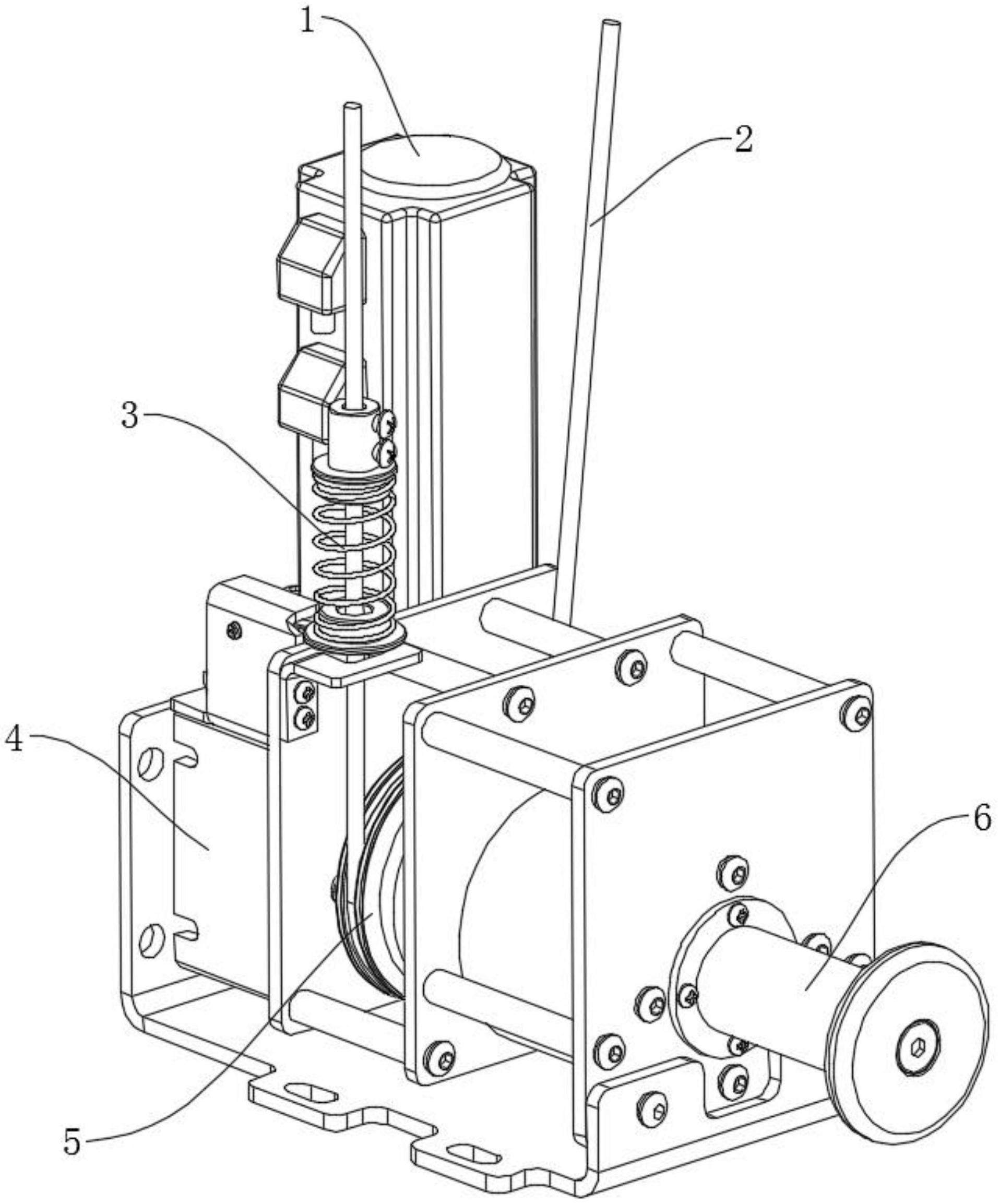 本实用新型涉及升旗控制领域,具体公开了手拉式与电动式双切换升旗机构。一种手拉式与电动式双切换升旗机构,包括电机及减速机,减速机包括转动轴,转动轴设有与其限位配合的切换连轴,切换连轴靠近减速机的一侧设有与其卡位连接且与转动轴间隙配合的曳引轮,切换连轴固定有与曳引轮活动连接的卡条,切换连轴一侧设有用于控制卡条与曳引轮分离或扣合的手柄。该手拉式与电动式双切换升旗机构通过切换连轴、卡条、曳引轮和手柄的相互配合,能够随时切换手动模式和电动模式,便于在电机出现故障的时候及时进行切换,方便操作、灵活且稳定;同时通过限位压簧的设置,在旗帜升降超出设定点后及时关闭电机,避免装置出现毁损等现象。