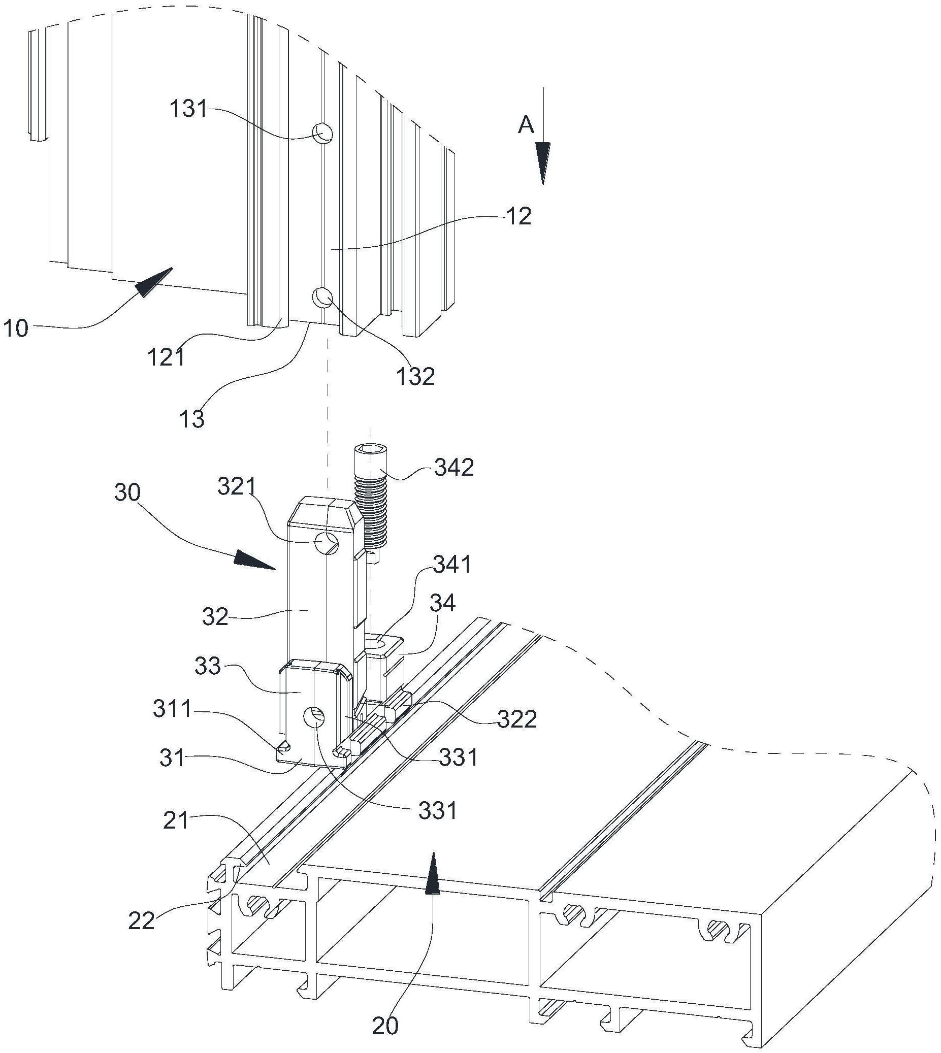 铝型材连接结构,包括竖向型材、横向型材、连接件;横向型材的表面设置有第一卡槽,该第一卡槽开口处的两侧分别设置有第一卡接部;竖向型材上设置插接槽、以及第二卡槽,第二卡槽开口处的两侧分别设置有第二卡接部;连接件包括基座、由基座的上表面向上凸起的插接部和卡接件,基座置于第一卡槽中且其两侧分别卡设于第一卡接部的内侧,插接部插入插接槽中,卡接件置于第二卡槽中且其两侧分别卡设于第二卡接部的内侧;基座上设置有与横向型材固定的第一螺钉,插接部上设置有与竖向型材固定的第二螺钉。本实用新型确保竖向型材和横向型材连接处的牢固性,同时适用于内腔尺寸较小的型材。