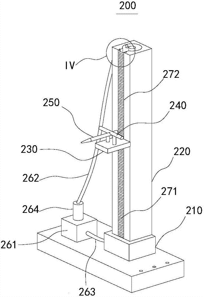 本实用新型涉及喷涂设备领域,具体而言,涉及一种稳定型喷粉机及喷涂装置。本实用新型公开了一种稳定型喷粉机,包括底座、固定筒、活动件、支架以及喷枪。固定筒设置在底座上,固定筒内沿固定筒的轴线设置有传动丝杠。底座设置有与传动丝杠传动连接的驱动装置;固定筒的外周沿固定筒的轴线设有开口,活动件的一端穿过开口与传动丝杠螺纹连接,活动件的另一端与支架连接,喷枪固定在支架上。该稳定型喷粉机结构简单,能够提高喷涂的稳定性。