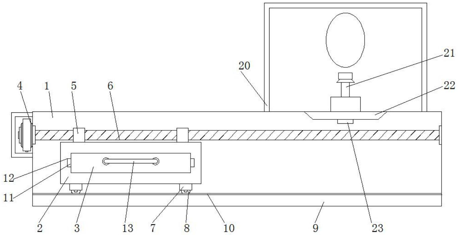 本实用新型公开一种节约空间浴室柜,包括墙体、浴室箱、浴室柜本体和移动组件,所述墙体内部的一侧设置有浴室箱,所述浴室箱的内部设置有浴室柜本体,所述浴室箱的外侧设置有移动组件,通过移动组件的设置对浴室柜本体进行灵活移动,提升了浴室柜本体的灵活性,扩大了墙体内部的使用空间,所述移动组件包括旋转电机、螺纹套、螺纹杆、固定座、滑轮、水泥板和滑槽,所述墙体的一侧设置有旋转电机;本实用新型通过浴室箱、浴室柜本体、旋转电机、螺纹套、螺纹杆、固定座、滑轮、水泥板和滑槽之间的相互配合使用,对浴室柜本体进行左右移动,使浴室柜本体在两侧进行自由移动,充分的利用了墙体内部的使用空间。