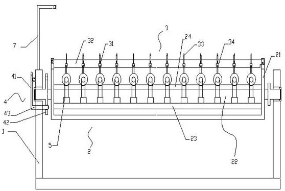 本发明涉及一种复合绝缘子金具注胶定位机构,其特征在于:包括支撑架,复合绝缘子定位架和复合绝缘子金具定位架;通过设置在复合绝缘定位架和复合绝缘子金具定位架上设置有多个工位可一次完成多个复合绝缘子金具在复合绝缘子上的注胶,提高了复合绝缘子金具在复合绝缘子上注胶的效率;在支撑架上精确定位复合绝缘子定位架和复合绝缘子金具定位架的相对位置,保证了在复合绝缘子上注胶复合绝缘子金具的精确度;复合绝缘子定位架与支撑架之间通过轴承结构相连且通过定位装置限制复合绝缘子定位架的转动,便于复合绝缘子在复合绝缘子定位架上的安装。