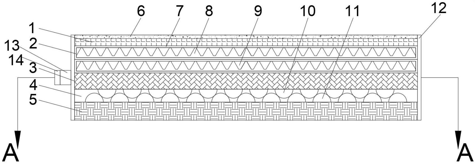 一种耐磨双层静音地板,包括耐磨层,所述的耐磨层设置成地板的表层,所述的耐磨层表面固定设有三氧化二铝涂层,所述的耐磨层远离所述的三氧化二铝涂层的一侧固定设有上下对称的静音层,所述的静音层之间粘接固定,所述的静音层的外层设有穿孔木板层,所述的穿孔木板层的上下表面设有多个微孔,所述的静音层远离所述的耐磨层的一侧固定设有软木层。本实用新型通过将静音层叠加设置形成双层静音结构,通过在静音层内设有上层玻璃棉和下层玻璃棉,将地板本体上传导下来的噪音进行吸收,使用不同容重的玻璃棉叠加在一起,形成容重逐渐增大的形式,使得地板具有更好的吸声效果。