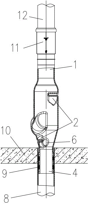 适用现有建筑改造的旋流器,包括排水立管上接口、下接口、排水横支管接口及内部导流叶片,其特征在于:排水立管上接口的口径与现有上部排水立管的管径相同,排水立管下接口的口径比现有下部排水管径的口径要小。本实用新型的优点在于:可以与现有旧房的上游排水立管和下游的排水立管无缝联接,在不影响上层和下层的情况下,更换本层排水管道及管件,实现地面敷设管道对填层高度很小的需求。