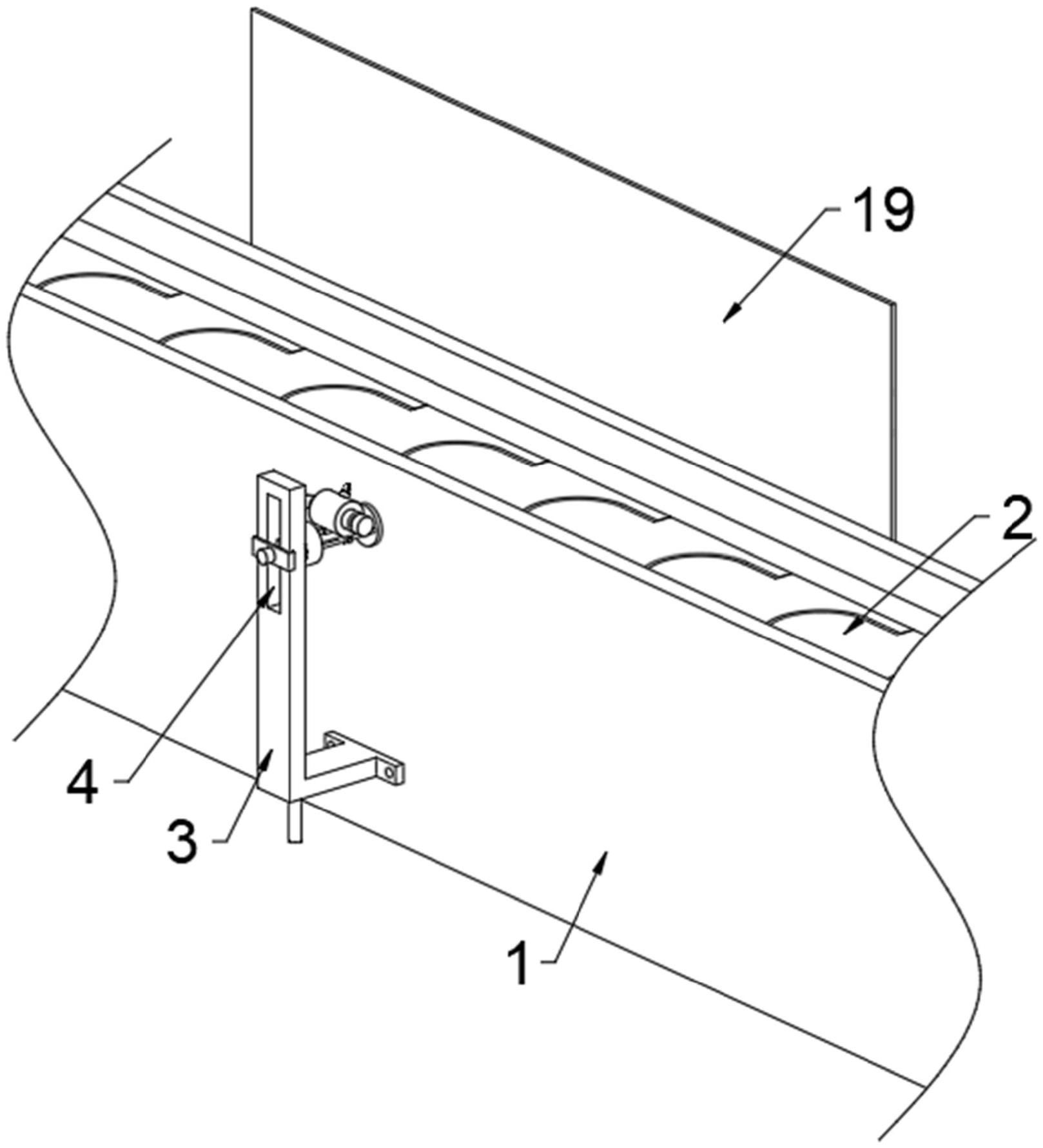 本实用新型公开了一种节能型铝盖密封性检测设备,包括传送机以及设置在所述传送机上端内部的传送固定带,所述传送固定带由多个活动件组成,且能对产品进行固定,并能对产品进行传送,所述传送机前端通过螺栓固定连接有连接支架,所述连接支架前端上侧内部前后贯穿有调高孔,通过在传送机和传送固定带前侧设置定向高压喷头,并通过调压旋钮和高压管提供和控制高压气体,使得定向高压喷头能对产品与铝盖之间的粘合效果进行检测,实现全自动全覆盖检测,通过在连接支架与定向高压喷头之间设置前调角盘、后调节座和调距滑轨,让定向高压喷头能进行高度和角度的调节,使得定向高压喷头能对产品与铝盖的不同粘合位置进行检测。