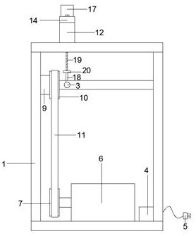 本实用新型涉及一种奶制品吹塑瓶口切割装置,属于吹塑瓶口切割技术领域,包括框架,通过将电源插头连接市电,固定架上端与下端均开有螺纹孔,使固定架在框架上可以左右移动,横板在固定架上可以前后移动,实现裁切刀可调节前后左右的距离,增加本实用新型的适用性,套筒、轴承和皮带盘中间是中空结构,使得瓶子可以填充进其中空结构中,当填入瓶子时,红外线感应器感应到瓶子,通过电路控制器控制气缸和电机启动,气缸的伸缩杆带动裁切刀下降,电机带动瓶子旋转,当裁切刀接触的旋转的瓶子时,对瓶口进行切割,当切割完成后,取出瓶子,红外线感应器感应不到物体,关闭气缸与电机,实现方便填塞下一个需要加工的瓶子。