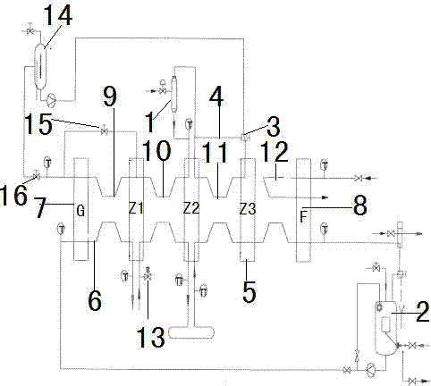 本实用新型涉及换热器,特别涉及一种控温方便的板式换热器。该控温方便的板式换热器,包括换热器本体,换热器本体分别与汽水混合器、物料缓冲罐、均质机连接,物料缓冲罐有纯净水进口,汽水混合器与调节阀连接,该调节阀还分别与一回流管、换热器本体相连,换热器本体包括板式换热器板片和板式换热器密封垫片、固定压紧板、活动压紧板,固定压紧板、活动压紧板分别位于左、右两侧。本实用新型的板式换热器结构简单、使用方便,通过与汽水混合器、物料缓冲罐的连接及调节阀、回流管的设置,有效控制流出物料的温度,扩大物料流出温度范围,可由原来的10℃-90℃,扩大到10-120℃,以满足更多产品的生产工艺要求。