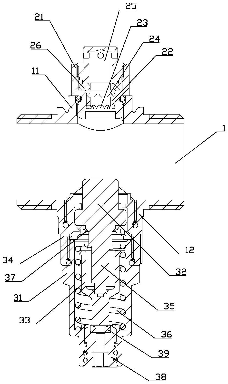 本实用新型属于阀门的技术领域,涉及一种防冻阀,包括与管道连接的阀体,所述阀体上设置有上接口和下接口,所述上接口连接有真空破坏器,所述下接口连接有防冻组件,所述防冻组件包括防冻接管,所述防冻接管内滑移设置有温包驱动的支撑套杆,所述支撑套杆向上移动时打开防冻组件内的液体流道,向下移动时关闭防冻组件内的液体流道。本实用新型提供的防冻阀,具有结构简单,感温精准,安全性高的优点。