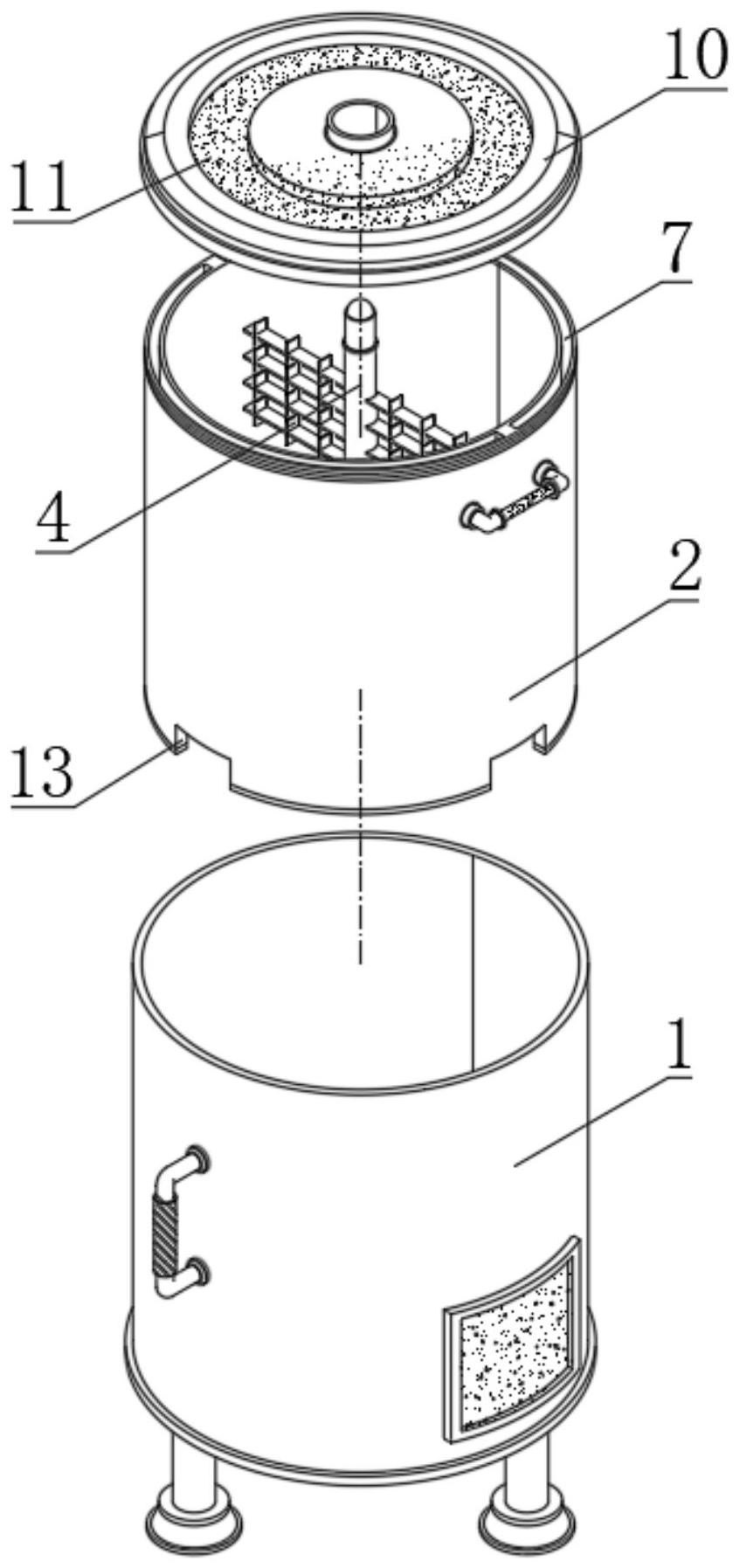 本实用新型涉及虾肉生产加工技术领域,且公开了一种虾肉破碎装置,包括承载罐、搅碎罐、电机、搅碎轴、传动盘、连接块和搅碎叶片,所述承载罐的上表面通过开设的槽与搅碎罐的外表面滑动连接,所述电机设置在承载罐的下表面,所述传动盘设置在电机的输出端,所述搅碎罐的上表面开设有冷却槽。该虾肉破碎装置通过冷却槽的作用,在冷却槽内放入冰块或冷却液等冷却物质,减少在对虾肉搅碎破碎的过程中虾肉因温升而变色的几率,避免影响虾肉的品质,能够起到及时冷却降温作用,配合搅碎轴与传动盘和连接块之间的连接,可以在搅碎破碎结束后对搅碎罐进行拆卸,也可以对搅碎轴进行拆卸,减少搅碎轴上的搅碎叶片对使用人员收取虾肉的影响。