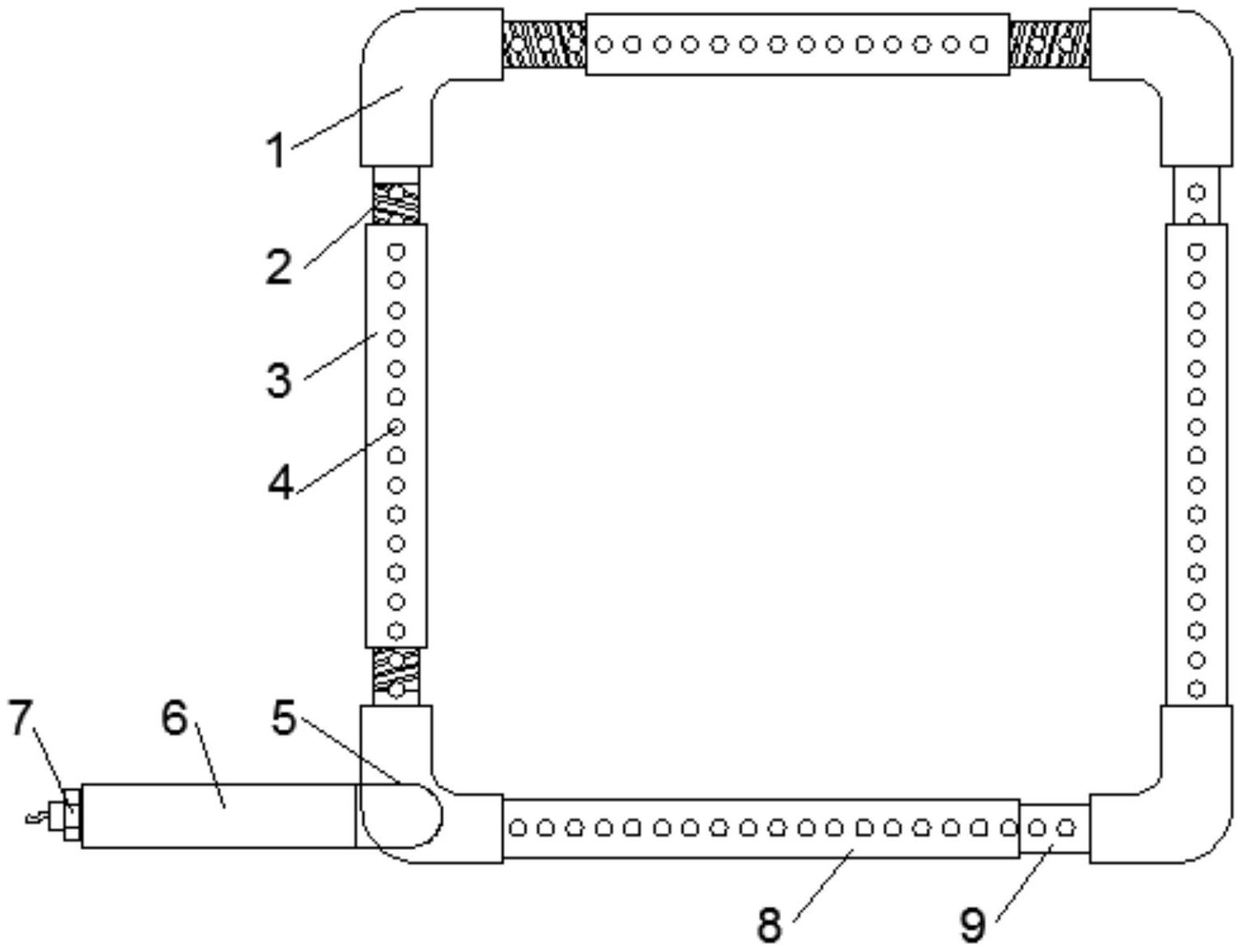 本实用新型属于解冻设备的技术领域,具体公开了一种用于解冻的气泡机,包括一对第一伸缩管和一对第二伸缩管,一对第一伸缩管和一对所述第二伸缩管依次连接构成环形管串;且管串的连接有进气管,进气管和管串所在的平面垂直,且进气管连接有气源,其中,第一伸缩管和第二伸缩管的侧壁均开设有排气孔。本实用新型可将管串置于容纳有水和生鲜冻品的容器内,进而利用水和生鲜冻品换热解冻的同时通过向容器内通气,提高水与外界热交换效率,通过气体发散水中,加快解冻,提高解冻效率;另外,可通过第一伸缩管和第二伸缩管的伸缩特性,以便于收纳,且可通过改变管串的尺寸以适应于不同尺寸的容器。