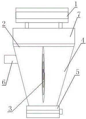 本实用新型公开了一种多功能水溶肥气体除尘装置的自清理装置,其组成包括筒体,筒体的顶部设置有过滤装置,过滤装置的顶部设置有引风机,筒体顶部侧壁上还设置有进料口,其特征在于:所述筒体为漏斗形结构,所述筒体的底部出料口处设置有翻板阀,所述筒体的内部中上部设置有横梁,所述横梁的正中位置固定安装有链条。本实用新型简单有效,不需要额外增加其他的动力设备,成本低,利于推广使用。