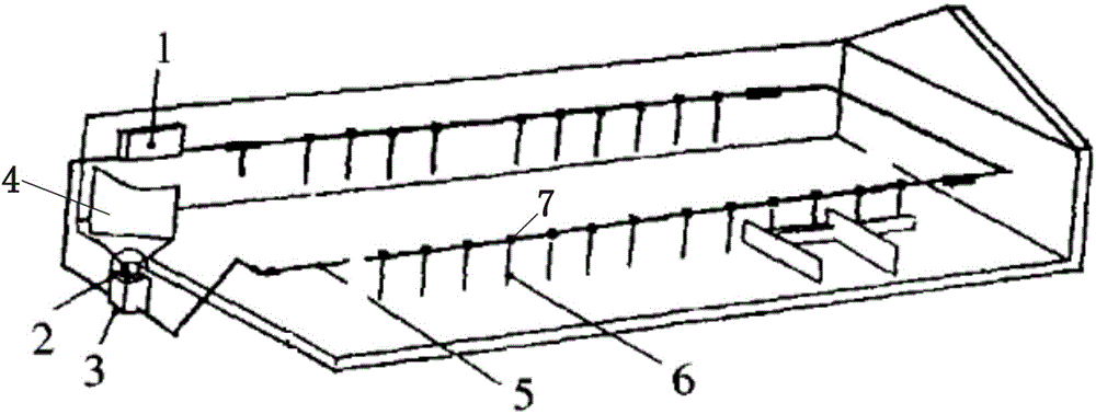 本实用新型公开了一种具备自动冲洗清理的养殖喂料系统;其特征在于:料箱位于料斗的下部且通过接料管连通,该养殖喂料系统由输送主管路连通驱动装置和料箱;输送主管路同时连通多个放料下管;放料下管的上端对应设有分料器;每四个放料下管对应于一套管路吹扫清理系统;管路吹扫清理系统包括压缩空气储气罐、脉冲控制仪、脉冲阀以及喷吹头;压缩空气储气罐通过出气管与脉冲阀连接,由脉冲阀控制喷吹头进行清理操作;放料下管的下端对应有食槽。喂料完成后可轻松实现管道清理工作;结构设计合理,利用效率高,且运行费用降低;专应用于畜禽养殖领域中用于干料自动喂料,还具有灵活、可靠、操作方便、运行及维护费用低等特点。