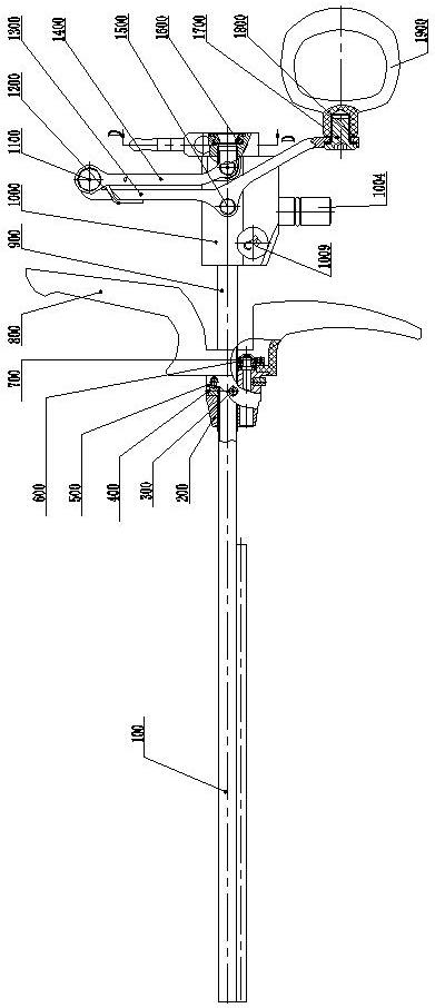 本申请涉及一种等离子电切镜的工作把手,所述工作把手设置有操作管组件、把手主体、保护管组件、手柄、滑块组件、扭架轴、扭架、支架、电极插头;所述保护管组件由保护管、镜座组成,保护管前端设置定位导向槽、轴向定位槽、径向定位孔、保护管弹片,保护管弹片与把手主体内壁配合压紧,把手主体上设置轴向定位销孔,轴向定位销过盈配合装入把手主体轴向定位销孔内,轴向定位销直径与保护管的定位导向槽、轴向定位槽宽度配合,轴向定位销头部位于保护管外壁与内壁之间,把手主体与保护管用径向定位螺钉固定。本申请结构简洁,安装维修方便,成本低,效果好。