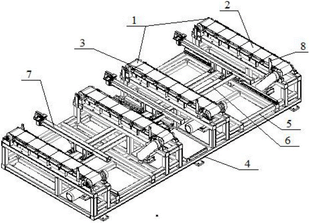 本实用新型公开了一种用于切管机的自动上料装置,涉及激光切割领域,该装置包括底架,所述底架上设置有导轨,所述导轨的顶部设置有至少一组送料机构,所述送料机构包括一正向传输机构和一镜像传输机构,所述正向传输机构和镜像传输机构、所述相邻送料机构之间均设置有夹持机构,所述夹持机构的底部设置有滑移机构,所述滑移机构用于带动夹持机构沿导轨方向滑动,所述正向传输机构和镜像传输机构均由若干运动方向与导轨相同的传输带组成,所述夹持机构包括一抓取架,所述抓取架上设置有若干与传输带的夹具。本实用新型能够满足连续生产的目的,提高生产效率,且比较安全。
