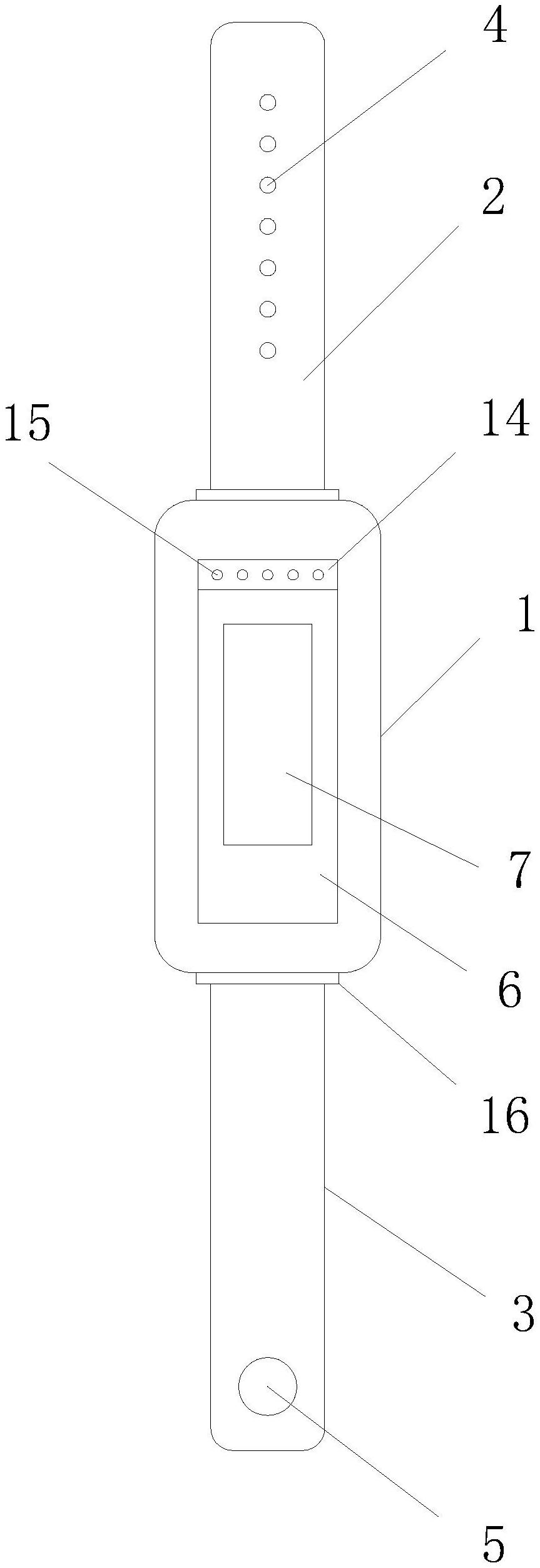 本实用新型公开了一种具有监护功能的智能手环,包括固定座和手环主体,所述固定座的上端面上开设有放置槽,所述放置槽的底部开设有通槽,所述手环主体设置在放置槽的内部,所述手环主体的底部插装在通槽的内部,所述手环主体的上端面上设置有玻璃面板,所述手环主体的底部设置有传感器区和充电区,所述固定座上设置有表带组件,所述放置槽的内部设置有紧固组件,本实用新型为一种具有监护功能的智能手环,通过设置限位凸条、卡接凸起和第一亲肤层等,达到了方便拆装,使用舒适方便,具备监护定位效果,解决了目前的手环通常采用卡扣式安装方式安装在表带座上,拆装十分麻烦,使用不方便,且舒适度低的问题。
